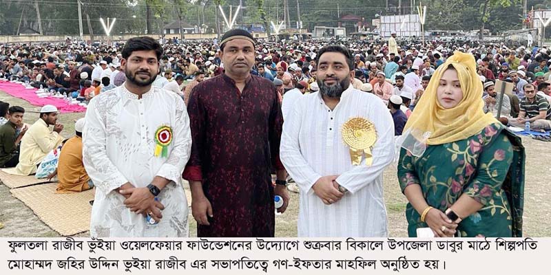 ফুলতলা (খুলনা) প্রতিনিধি// রাজীব ভুঁইয়া ওয়েলফেয়ার ফাউন্ডেশনের উদ্যোগে শুক্রবার বিকালে সকল পেশা ও শ্রেণীর পুরুষ ও নারীদের নিয়ে এক গণ-ইফতার …
