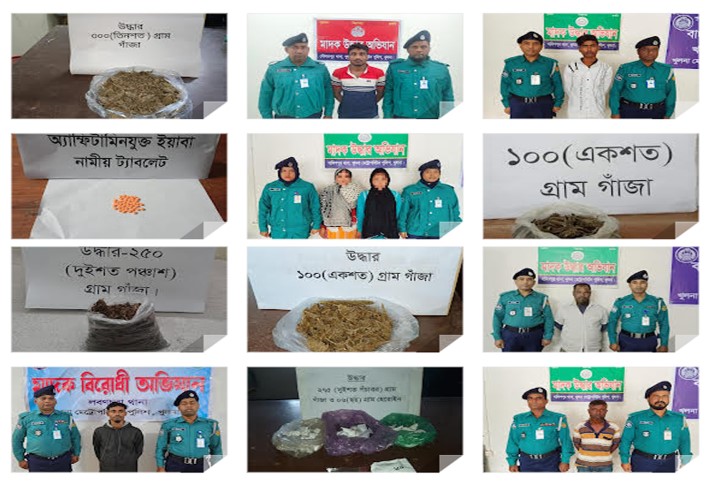 কেএমপি’র মাদক বিরোধী অভিযানে ০১ কেজি ২৫ গ্রাম গাঁজা, ১০০ পিস ইয়াবা ট্যাবলেট এবং ০৬ গ্রাম হেরোইন সহ ০৯ (নয়) …