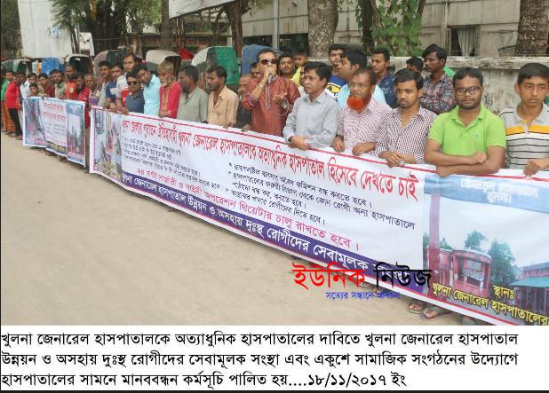 খুলনা : খুলনা জেনারেল হাসপাতালকে আধুনিকায়নের দাবিতে খুলনা জেনারেল হাসপাতাল উন্নয়ন ও অসহায় দুঃস্থ রোগীদের সেবামূলক সংস্থা এবং একুশে সামাজিক …