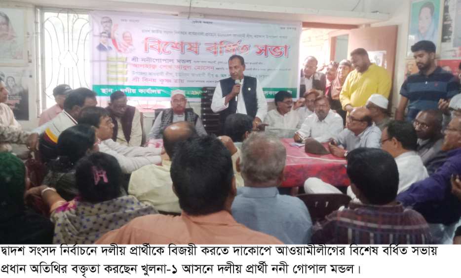 দাকোপ প্রতিনিধি : আসন্ন দ্বাদশ জাতীয় সংসদ নির্বাচনে খুলনা-১ আসনে দলীয় প্রার্থীকে বিজয়ী করতে নির্বাচনের কার্যপ্রনালী প্রনয়নে দাকোপ উপজেলা আওয়ামী …