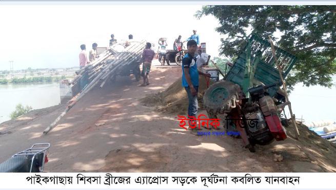 পাইকগাছা (খুলনা) : পাইকগাছায় এ্যাপ্রোস সড়কের চেয়ে শিবসা ব্রীজের উচ্চতা বেশি হওয়ায় ব্রীজের উঠার সময় পাল্টি খেয়ে খাদে পড়ছে ছোট …