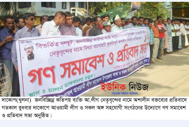 দাকোপ প্রতিনিধি : বিতর্কিত দলছুট, জনবিচ্ছিন্ন কতিপয় ব্যক্তি কর্তৃক উপজেলা আওয়ামীলীগ নেতৃন্দের নামে মিথ্যা বানোয়াট কুরুচিপূর্ণ অশালীন বক্তব্যের প্রতিবাদে দাকোপে …