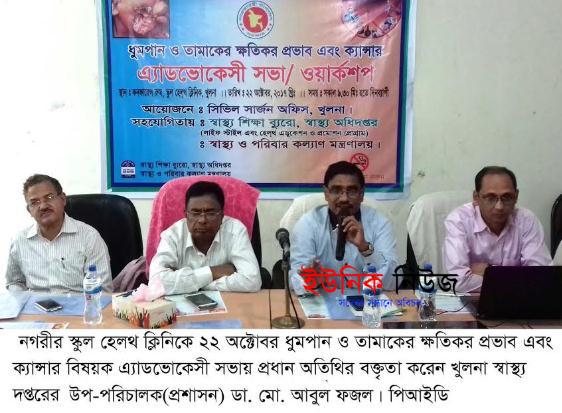 তথ্যবিবরণী : ধুমপান ও তামাকের ক্ষতিকর প্রভাব এবং ক্যান্সার বিষয়ক এ্যাডভোকেসী সভা রবিবার সকালে নগরীর স্কুল হেলথ ক্লিনিকে অনুষ্ঠিত হয়। …