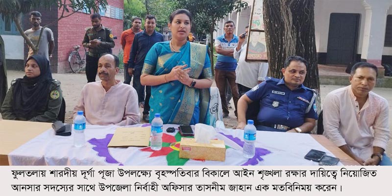 ফুলতলা (খুলনা) প্রতিনিধি// ফুলতলা উপজেলা প্রশাসনের উদ্যোগে আসন্ন শারদীয় দূর্গাপূজা উপলক্ষ্যে আইন শৃঙ্খলা রক্ষার দায়িত্বে নিয়োজিত আসসার সদস্যদের সাথে বৃহস্পতিবার …
