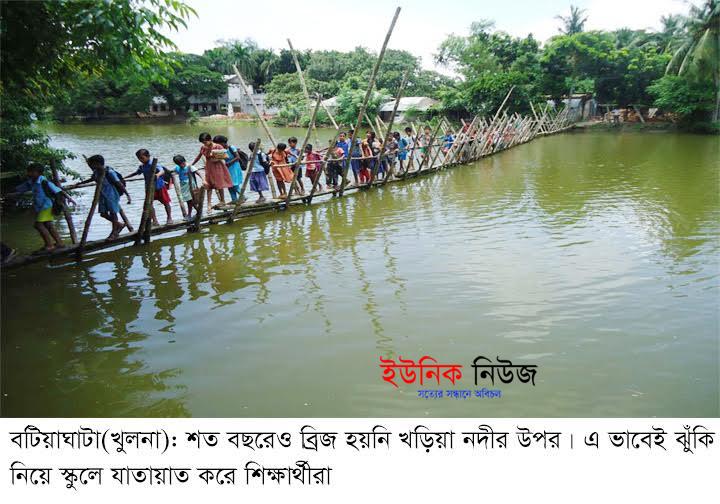 আব্দুল হামিদ, বটিয়াঘাটা (খুলনা): খুলনার বটিয়াঘাটা উপজেলার খড়িয়া নদীর উপর ব্রীজ অভাবে তিন ইউনিয়নের ১৩ গ্রামের ছাত্র-ছাত্রী ঝুঁকি নিয়ে বাঁশের …