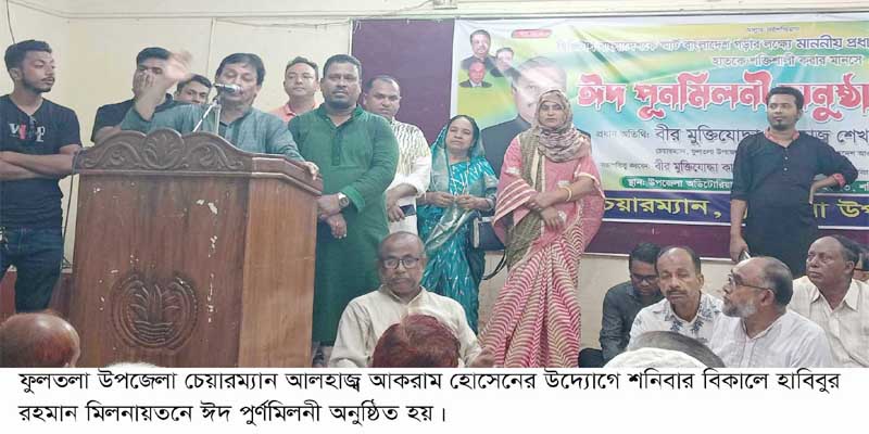 ফুলতলা (খুলনা) প্রতিনিধি// ফুলতলা উপজেলা পরিষদের চেয়ারম্যান উদ্যোগে ঈদ পুর্ণমিলনী অনুষ্ঠান শনিবার বিকালে উপজেলা হাবিবুর রহমান মিলনায়তনে অনুষ্ঠিত হয়। বীর …