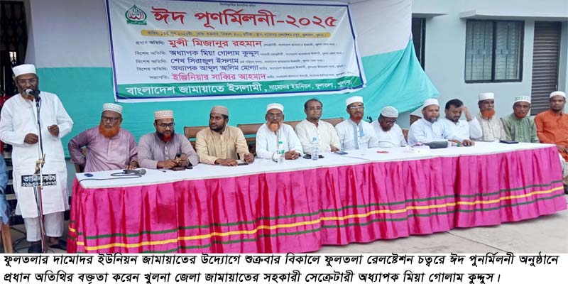 ফুলতলা (খুলনা) প্রতিনিধি//ফুলতলার দামোদর ইউনিয়ন জামায়াতের উদ্যোগে শুক্রবার বিকালে ফুলতলা রেলষ্টেশন চত্বরে ঈদ পুনর্মিলনী অনুষ্ঠান অনুষ্ঠিত হয়। ইউনিয়ন জামায়াতের আমির …