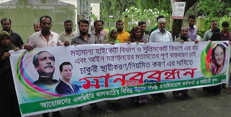 ঝালকাঠি প্রতিনিধি: চাকরি স্থায়ীকরণের দাবিতে ঝালকাঠিতে মানববন্ধন করেছে এলজিইডির বিভিন্ন উন্নয় প্রকল্প ও মাস্টাররোল কর্মকর্তা-কর্মচারীরা। মঙ্গলবার সকাল ১১টায় এলজিইডি অফিসের …