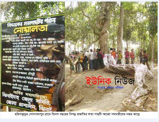 জাহিদুর রহমান তারিক, ঝিনাইদহঃ ঝিনাইদহের হরিনাকুন্ডু উপজেলার সোনাতনপুার গ্রামে পরিবেশ বান্ধব একটি বিপন্ন প্রজাতির লতা গাছ এখনো পথচারীদের দৃষ্টি আকর্ষন …
