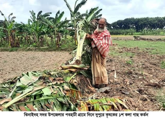 আলিফ আবেদীন গুঞ্জন, ঝিনাইদহ : ঝিনাইদহে এক কৃষকের বাগানের ১০০টি কলাগাছ কেটে দিয়েছে দুবৃর্ত্তরা। সোমবার দুপুরে সদর উপজেলার পবাহাটি গ্রামে …