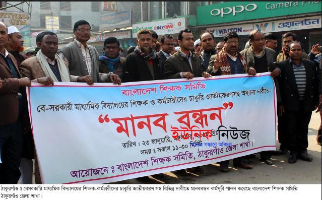 জয় মহন্ত অলক, ঠাকুরগাঁও : বেসরকারি মাধ্যমিক বিদ্যালয়ের শিক্ষক-কর্মচারীদের চাকুরি জাতীয়করণ সহ বিভিন্ন দাবীতে মানববন্ধন কর্মসূচী পালন করেছে বাংলাদেশ শিক্ষক …