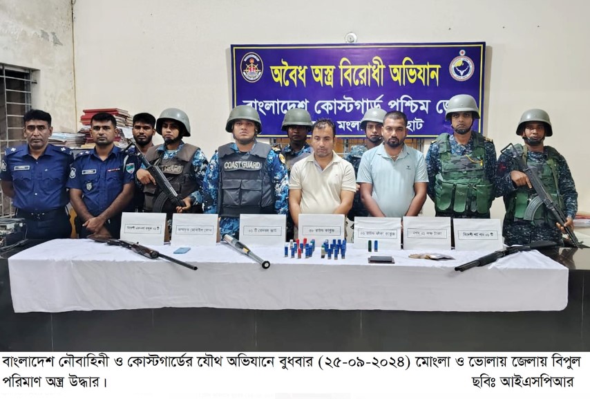 মোংলা প্রতিনিধিঃ মোংলায় কোস্ট গার্ডের অভিযানে ২টি বিদেশি আগ্নেয়াস্ত্র ও বিপুল পরিমাণ গোলাবারুদসহ এক যুবলীগ কর্মী ও তার সহযোগী আটক …