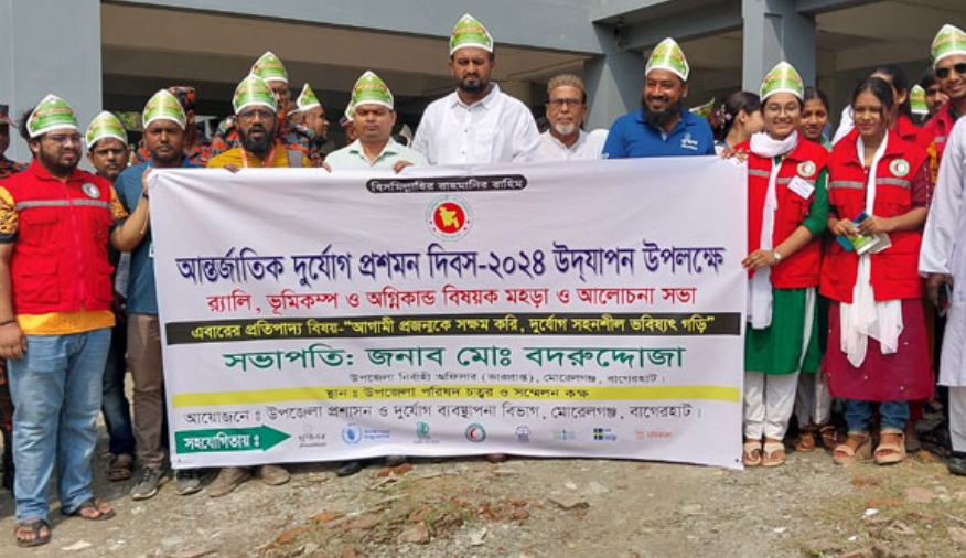ডেস্ক নিউজ : “আগামী প্রজন্মকে সক্ষম করি, দুর্যোহ সহনীল ভবিষ্যৎ গড়ি” এ প্রতিপাদ্য বিষয়ে বাগেরহাটের মোরেলগঞ্জে আন্তর্জাতিক দুর্যোগ প্রশমন দিবস …