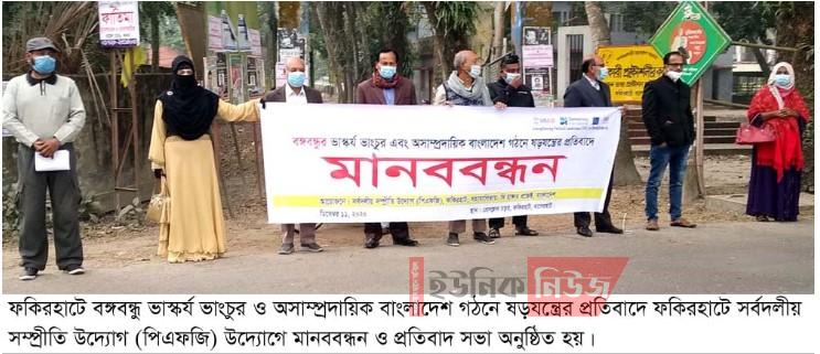 ফকিরহাট : বঙ্গবন্ধু ভাস্কর্য ভাংচুর এবং অসাম্প্রদায়িক বাংলাদেশ গঠনে ষড়যন্ত্রের প্রতিবাদে ফকিরহাটে সর্বদলীয় সম্প্রীতি উদ্যোগ (পিএফজি) উদ্যোগে ও দি হাঙ্গার …