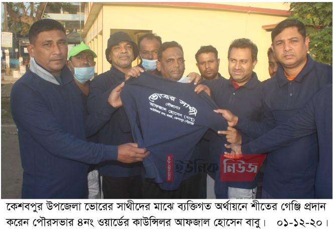 কেশবপুর (যশোর) প্রতিনিধি : যশোরের কেশবপুর উপজেলা ভোরের সাথীদের মাঝে শীতের গেঞ্জি বিতরণ করা হয়েছে। মঙ্গলবার সকালে ব্যক্তিগত অর্থায়নে ভোরের …