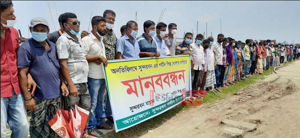 মোংলা (বাগেরহাট) প্রতিনিধিঃ দর্শনার্থীদের আগমন ও ভ্রমণের জন্য সুন্দরবনের পর্যটন শিল্প উম্মুক্ত/খুলে দেয়ার দাবীতে মোংলায় মানববন্ধন কর্মসূচী পালন করেছে সুন্দরবন …