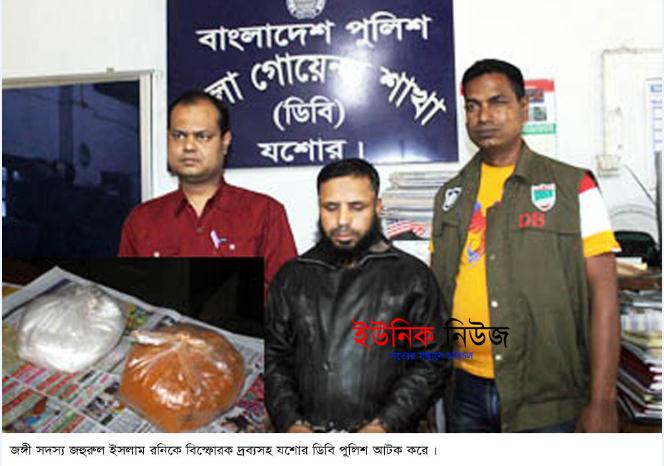 যশোর অফিস : যশোর জেলা গোয়েন্দা পুলিশ (ডিবি) জহুরুল ইসলাম রনি (৩৭) নামে এক ব্যক্তিকে বিস্ফোরকদ্রব্যসহ আটক করেছে। রনি জঙ্গি …