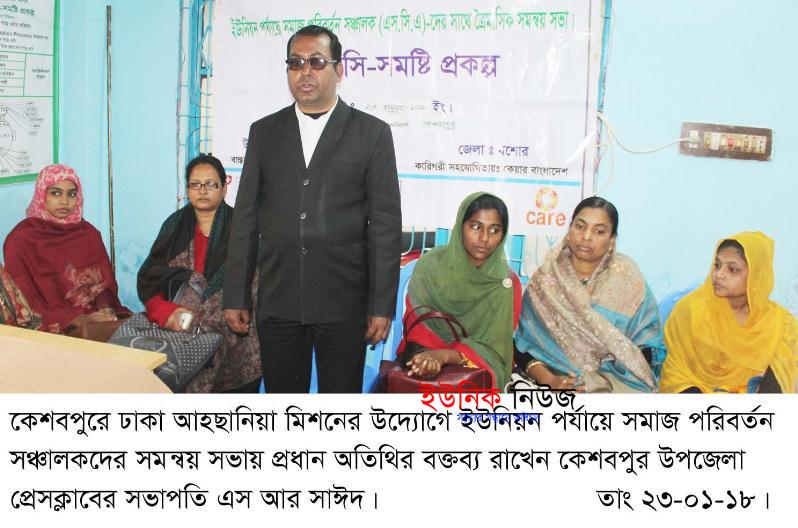 কেশবপুর (যশোর) প্রতিনিধি : কেশবপুরে ঢাকা আহছানিয়া মিশনের এসডিসি সমষ্টি প্রকল্পের উদ্যোগে ও কেয়ার বাংলাদেশের সহযোগিতায় ইউনিয়ন পর্যায়ে সমাজ পরিবর্তন …