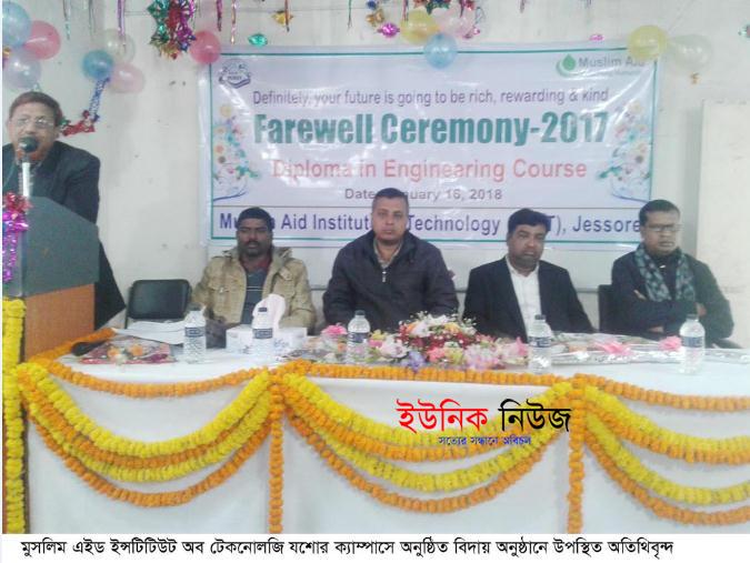 রবিউল ইসলাম মিটু, যশোর : মুসলিম এইড ইন্সটিটিউট অব টেকনোলজি( এমএআইটি) যশোর ক্যাম্পাসের ২০১৩-১৪ শিক্ষা বর্ষের শিক্ষার্থীদের বিদায় সম্বর্ধনা অনুষ্ঠান …