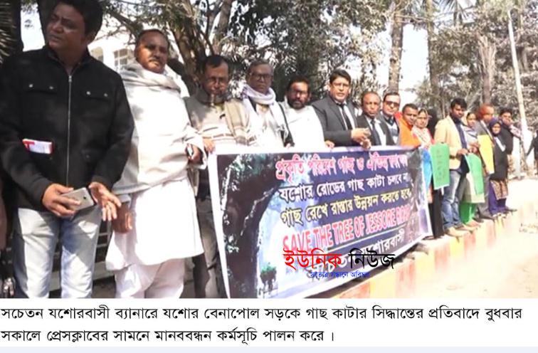 রবিউল ইসলাম মিটু, যশোর : ঐতিহাসিক যশোর-বেনাপোল মহাসড়কের দেড় শতাধিক বছরের পুরাতন গাছ কাটার সিদ্ধান্তের প্রতিবাদে মানববন্ধন করা হয়েছে যশোরে। …