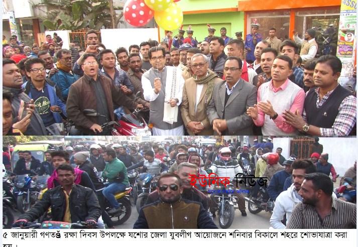 রবিউল ইসলাম মিটু,যশোর : ৫ জানুয়ারী গণতন্ত্র মুক্তি দিবস’ উপলক্ষে জেলা যুবলীগ আয়োজনে শনিবার বিকালে যশোর শহরে এক বিশাল শোভাযাত্রা …