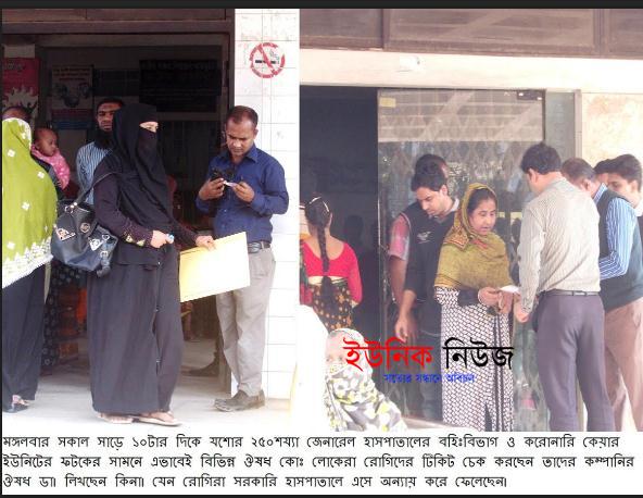 রবিউল ইসলাম মিটু, যশোর : যশোর ২৫০শয্যা জেনারেল হাসপাতালের বহি বিভাগ ও করোনারি কেয়ার ইউনিটের সামনে এসিআই সহ বিভিন্ন ঔষধ কোম্পানির …