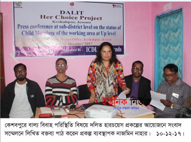 কেশবপুর (যশোর) প্রতিনিধি : যশোরের কেশবপুরে বাল্য বিবাহ পরিস্থিতি অবহিতকরণের উদ্দেশ্যে রবিবার দিনব্যাপী দলিত হারচয়েস প্রকল্পের আয়োজনে এক সংবাদ সম্মেলন …