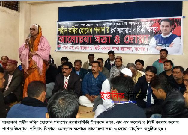 রবিউল ইসলাম মিটু,যশোর : জেলা ছাত্রদলের সহ-সভাপতি কবির হোসেন পলাশের চতুর্থ মৃত্যুবার্ষিকী উপলক্ষে শনিবার বিকালে প্রেসক্লাব যশোরে আলোচনা সভা ও …
