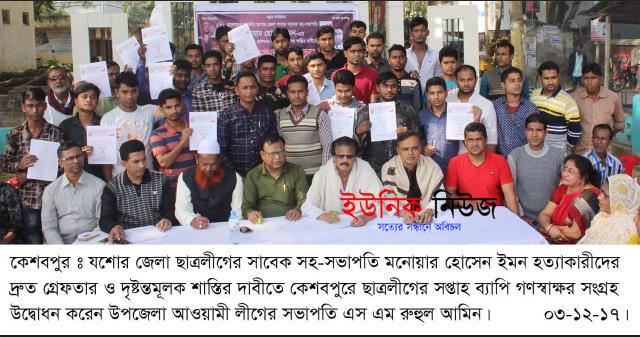 এস আর সাঈদ, কেশবপুর (যশোর) : যশোরের কেশবপুর উপজেলা ও ছাত্রলীগের উদ্যোগে যশোর জেলা ছাত্রলীগের সাবেক সহ-সভাপতি মনোয়ার হোসেন ইমন …