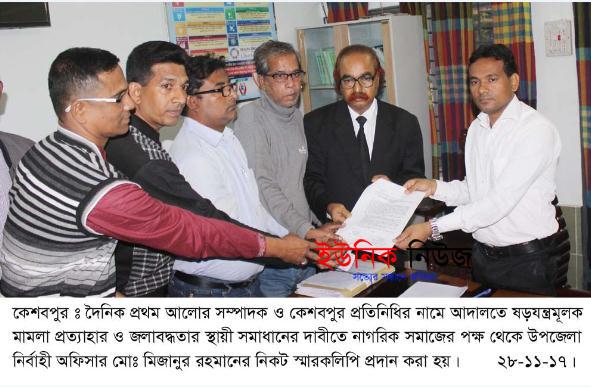 এস আর সাঈদ, কেশবপুর (যশোর) : দৈনিক প্রথম আলোর প্রকাশক ও সম্পাদক মতিউর রহমান এবং কেশবপুর প্রতিনিধি দিলীপ মোদকের নামে …