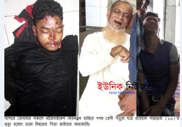 রবিউল ইসলাম মিন্টু, যশোর : যশোরে মটরসাইকেল নিয়নন্ত্র্রন হারিয়ে এক দশম শ্রেণী পড়ুয়া ছাত্রের মৃত্যু হয়েছে । ঘটনাটি রোববার সকাল …