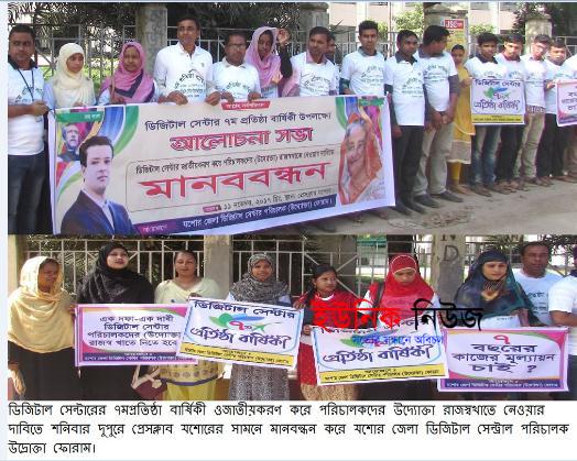 রবিউল ইসলাম মিটু, যশোর : ডিজিটাল সেন্টারের ৭ম প্রতিষ্ঠাবার্ষিকী উপলক্ষে শনিবার সকালে প্রেসক্লাব যশোরে সামনে মানববন্ধন করা হয়েছে। ডিজিটাল সেন্টার …