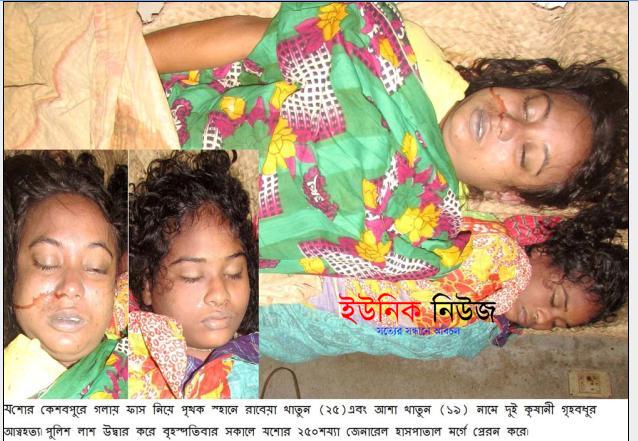রবিউল ইসলাম মিটু, যশোর : যশোরে দুইজন গৃহবধু গলায় ফাঁস দিয়ে আত্মহত্যা করেছেন। নিহতরা হলো, কেশবপুর উপজেলার হাড়িয়াঘোপ গ্রামের কৃষক শরিফুল …