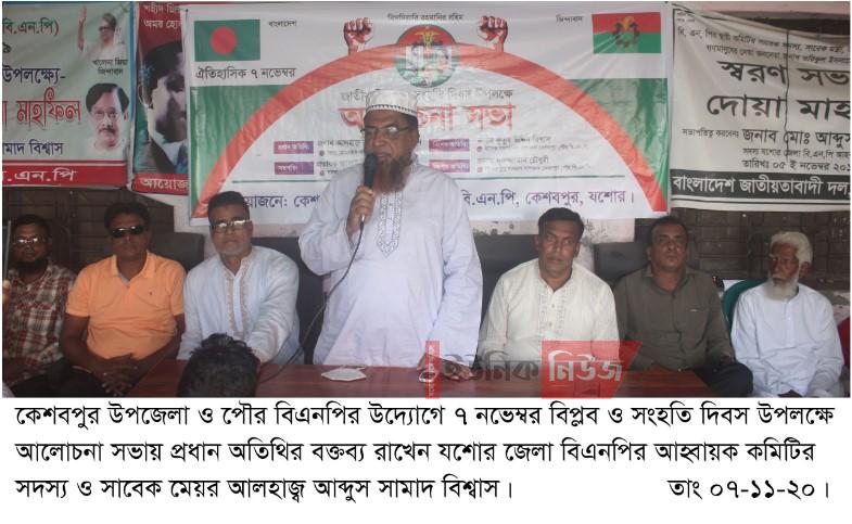 এস আর সাঈদ, কেশবপুর (যশোর) : যশোরের কেশবপুর উপজেলা ও পৌর বিএনপির উদ্যোগে ৭ নভেম্বর বিপ্লব ও সংহতি দিবস উপলক্ষে …