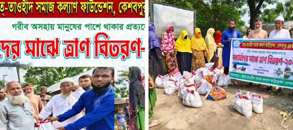 যশোর প্রতিনিধি : যশোরের কেশবপুরের আত-তাওহীদ সমাজ কল্যাণ ফাউন্ডেশনের উদ্যোগে ত্রাণ বিতরণ করেছে। মঙ্গলবার বিকেলে যশোর জেলার কেশবপুর-মনিরামপুর উপজেলা এলাকায় অতিবৃষ্টিতে …