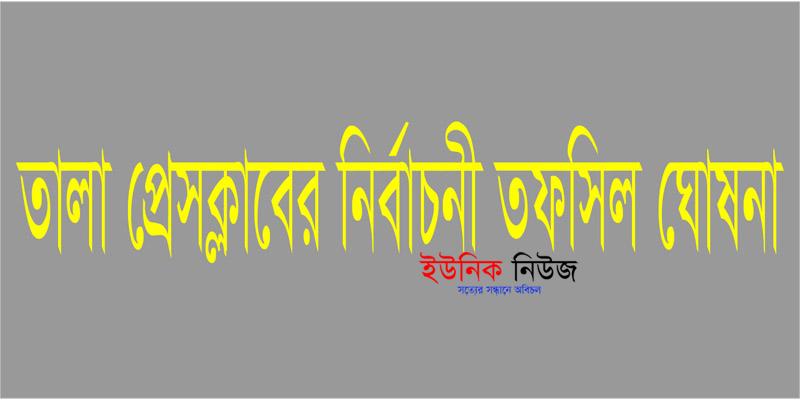 তালা প্রতিনিধিঃ তালা প্রেসক্লাবের কার্যনির্বাহী কমিটি গঠনের লক্ষ্যে তফসিল ঘোষনা করা হয়েছে। শনিবার (৫আগষ্ট) সকালে উপজেলা মাধ্যমিক শিক্ষা অফিসার ও …