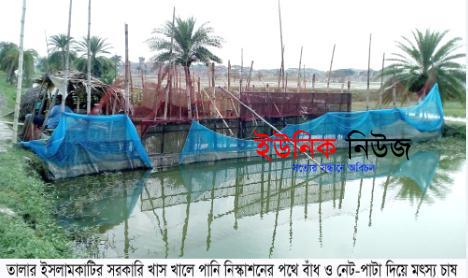 সেলিম হায়দার, তালা : পানি নিস্কাশনের পথ বন্ধ করে সাতক্ষীরার তালা উপজেলার চল্লিশা বিলের সরকারি খাস খালে বাঁধ ও নেট-পাটা …