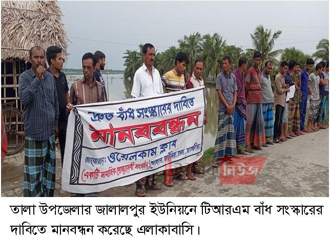 তালা প্রতিনিধি : তালা উপজেলার জালালপুর ইউনিয়নের টিআরএম বাঁধ সংস্কারের দাবীতে মানবন্ধন অনুষ্ঠিত হয়েছে। মঙ্গলবার সকালে জালালপুর ইউনিয়নের দোহার-আটলিয়া গ্রামের …