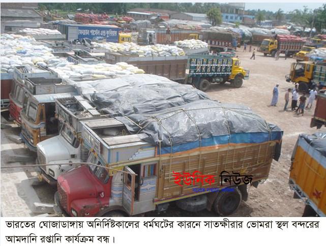 সাতক্ষীরা প্রতিনিধি : ভারতের ঘোজাডাঙ্গা বন্দরের সিএন্ডএফ এজেন্ট কর্মচারী ওয়েলফেয়ার এসোসিয়েশনের অনির্দিষ্টকালের ধর্মঘটের কারনে দেশের দ্বিতীয় বৃহত্তম সাতক্ষীরার ভোমরা স্থল বন্দরের …