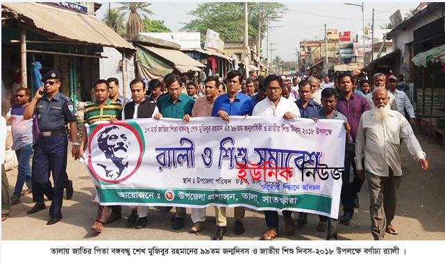 তালা অফিস : সাতক্ষীরার তালায় বিভিন্ন কর্মসূচির মধ্যদিয়ে জাতির পিতা বঙ্গবন্ধু শেখ মুজিবুর রহমানের ৯৯তম জন্ম দিবস ও জাতীয় শিশু …