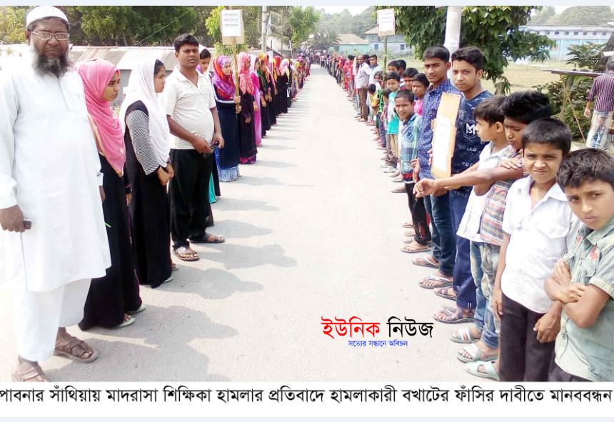 ফারুক হোসেন, সাঁথিয়াঃ পাবনার সাঁথিয়ায় এক মাদরাসা শিক্ষিকাকে হামলার প্রতিবাদে হামলাকারী বখাটেকে গ্রেফতারের দাবীতে মানববন্ধন করেছে মাদরাসাসহ এলাকার বেশ কয়েকটি …