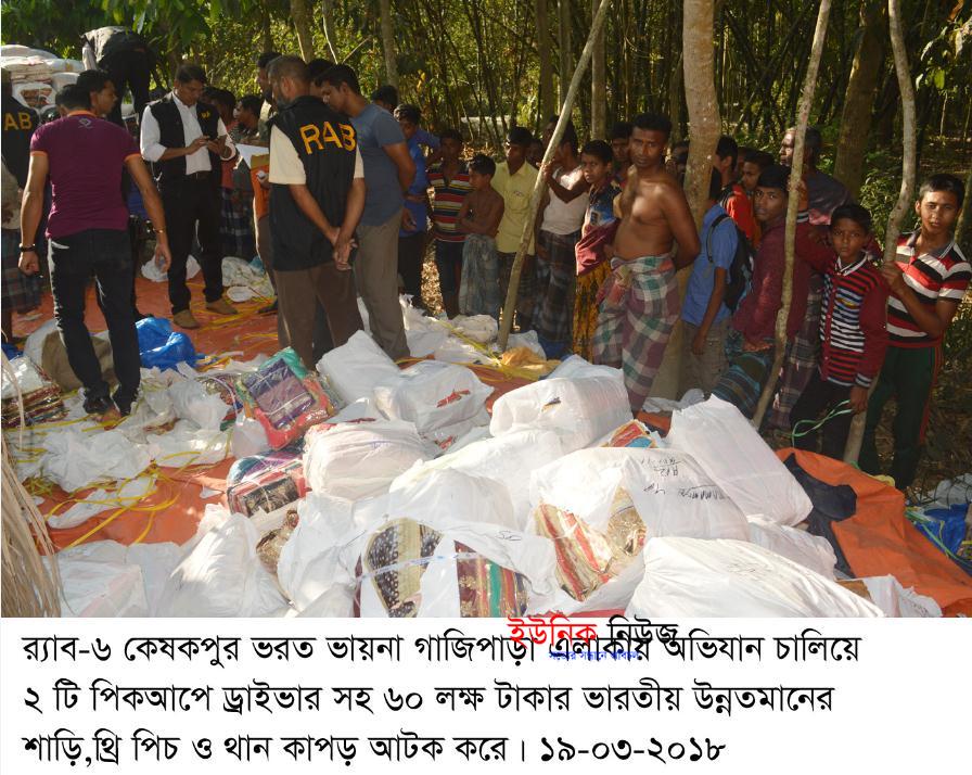 খুলনা : খুলনা-যশোরের মধ্যবর্তী কেশবপুরের ভরত ভায়ানা সংলগ্ন গাজীপাড়া এলাকা থেকে ১৩৭০ পিস ভারতীয় উন্নত মানের শাড়ি, ৬০০ পিস থ্রি পিস …