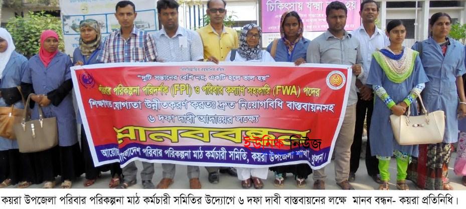 কয়রা (খুলনা) প্রতিনিধি : কয়রা উপজেলা পরিবার পরিকল্পনা মাঠ কর্মচারী সমিতির উদ্যোগে পরিবার পরিকল্পনা ও পরিবার কল্যাণ সহকারী পদের শিক্ষাগত …