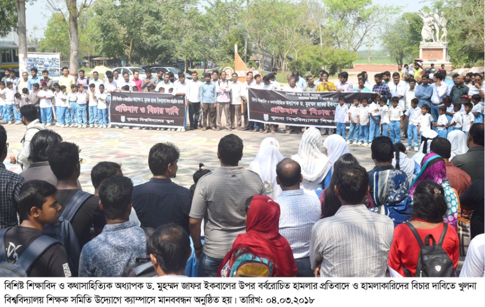 খুলনা : সিলেটে শাহজালাল বিজ্ঞান ও প্রযুক্তি বিশ্ববিদ্যালয়ের শিক্ষক প্রগতিশীল বুদ্ধিজীবী অধ্যাপক মুহম্মদ জাফর ইকবালের উপর বর্বরোচিত হামলার প্রতিবাদে ও …