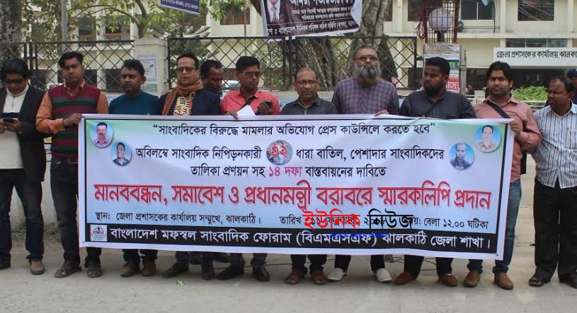 ঝালকাঠি প্রতিনিধি: ৩২ ধারা বাতিল ও পেশাদার সাংবাদিকদের তালিকা প্রননয়ন সহ ১৪ দফা দাবীতে মানববন্ধন করেছে বাংলাদেশ মফস্বল সাংবাদিক ফোরাম …