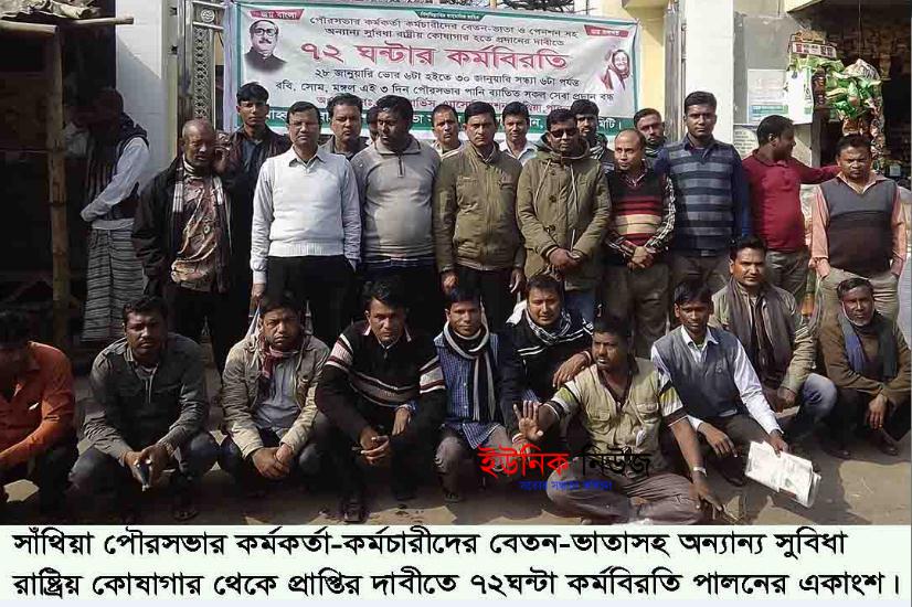 সাঁথিয়া(পাবনা)প্রতিনিধিঃ কেন্দ্রীয় কর্মসূচীর আওতাধীন পৌরসভার পৌর কর্মকর্তা-কর্মচারীদের বেতন-ভাতা ও পেনশন কেন্দ্রীয় সরকারের কোষাগার থেকে প্রাপ্তির দাবীতে রবিবার, সোমবার ও মঙ্গলবার …