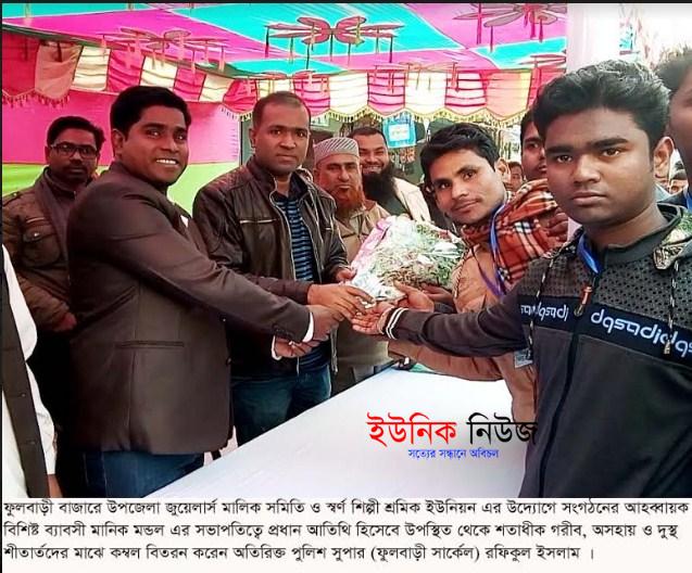 ফুলবাড়ী দিনাজপুর প্রতিনিধি : দিনাজপুরের ফুলবাড়ী উপজেলা জুয়েলার্স মালিক সমিতি ও স্বর্ণ শিল্পী শ্রমিক ইউনিয়ন এর উদ্যোগে গরীব ও অসহায় শীতার্তদের …