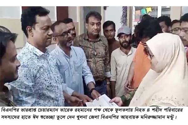 ফুলতলা (খুলনা) প্রতিনিধি// বিএনপির ভারপ্রাপ্ত চেয়ারম্যান তারেক রহমানের পক্ষ থেকে খুলনার ফুলতলায় প্রতিপক্ষের হামলায় নিহত বিএনপির ৪ নেতা কর্মীর পরিবারকে …