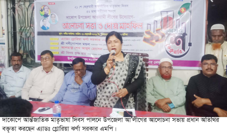 দাকোপ প্রতিনিধিঃ মহান শহীদ দিবস ও আর্ন্তজাতিক মাতৃভাষা দিবস পালনে দাকোপে উপজেলা আওয়ামীলীগের উদ্যোগে আলোচনা সভা অনুষ্ঠিত হয়েছে। মঙ্গলবার বিকাল …