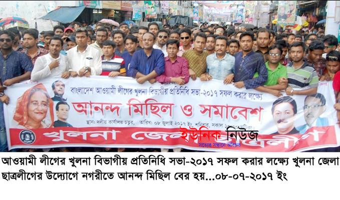বিজ্ঞপ্তিঃ আওয়ামী লীগের খুলনা বিভাগীয় প্রতিনিধি সভা-২০১৭ সফল করার লক্ষ্যে খুলনা জেলা ছাত্রলীগের উদ্যোগে আনন্দ মিছিল ও সমাবেশ অনুষ্ঠিত হয়েছে। …